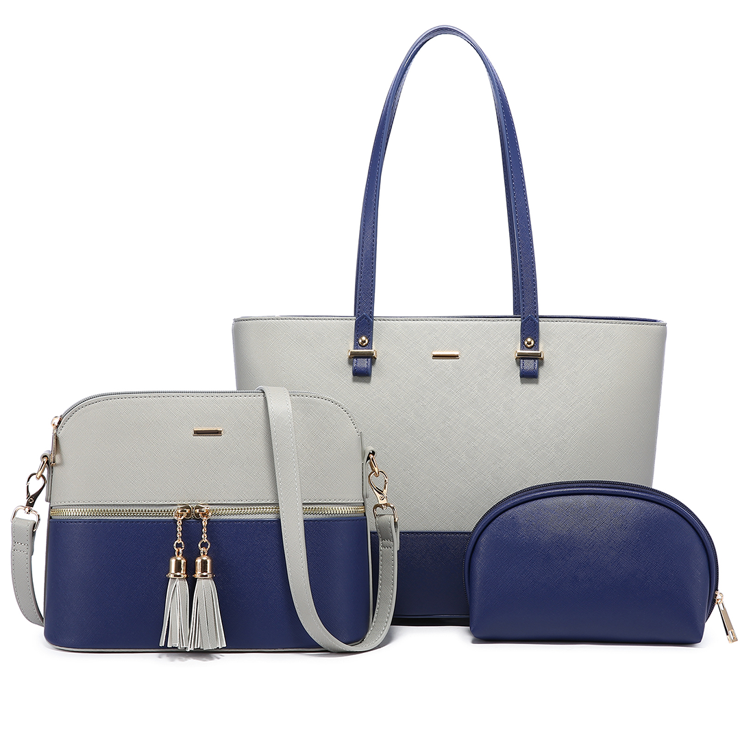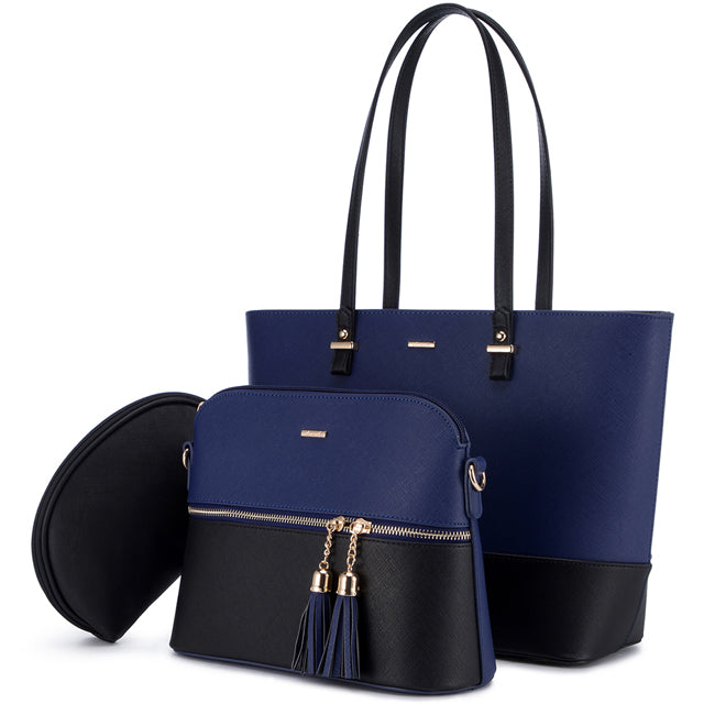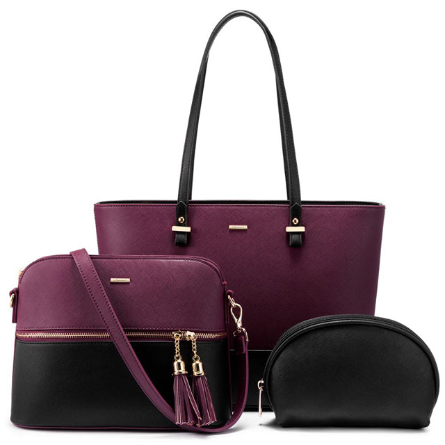 • 3 tasker til alle lejligheder: Inkluderer en stor tote, en mellem crossbody taske og en lille clutch til alsidig brug.